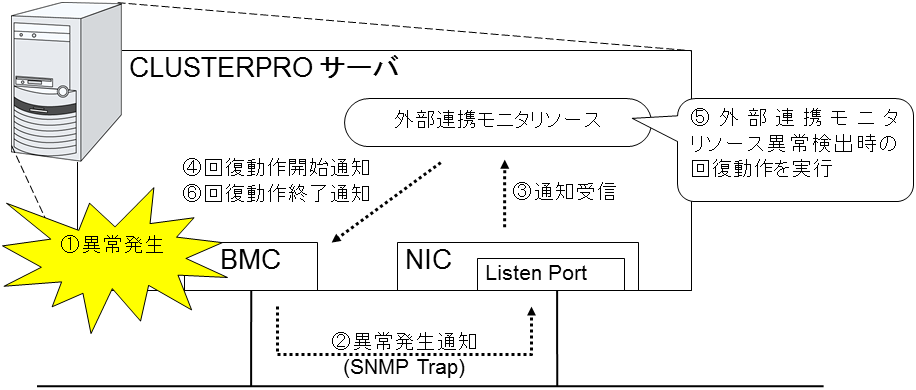 Express5800/A1080a,A1040a シリーズに搭載された BMC が異常を検出した場合に、即座に CLUSTERPRO で回復動作を実行するための機能です。