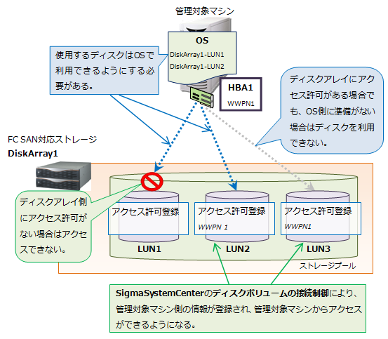 (1)SigmaSystemCenterのディスクボリュームと管理対象マシンとの接続制御