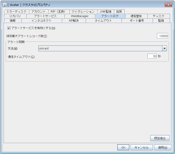 CLUSTERPRO 動作状況がメッセージとして表示されます。詳しくは「 2.5. WebManager でアラートを確認する」を参照してください。