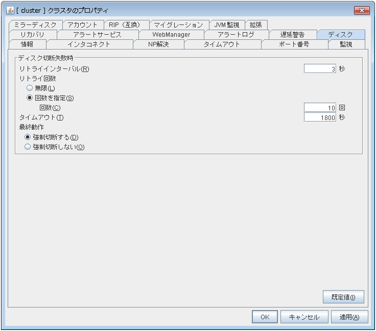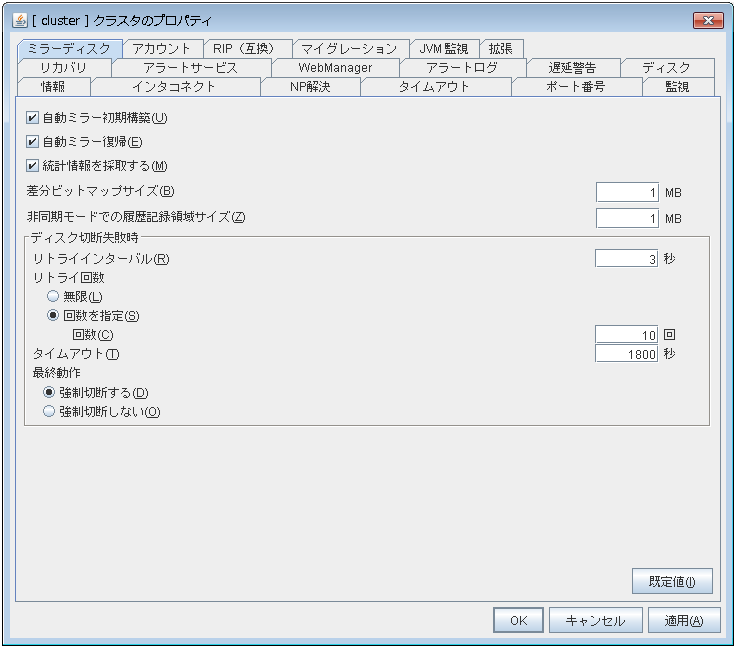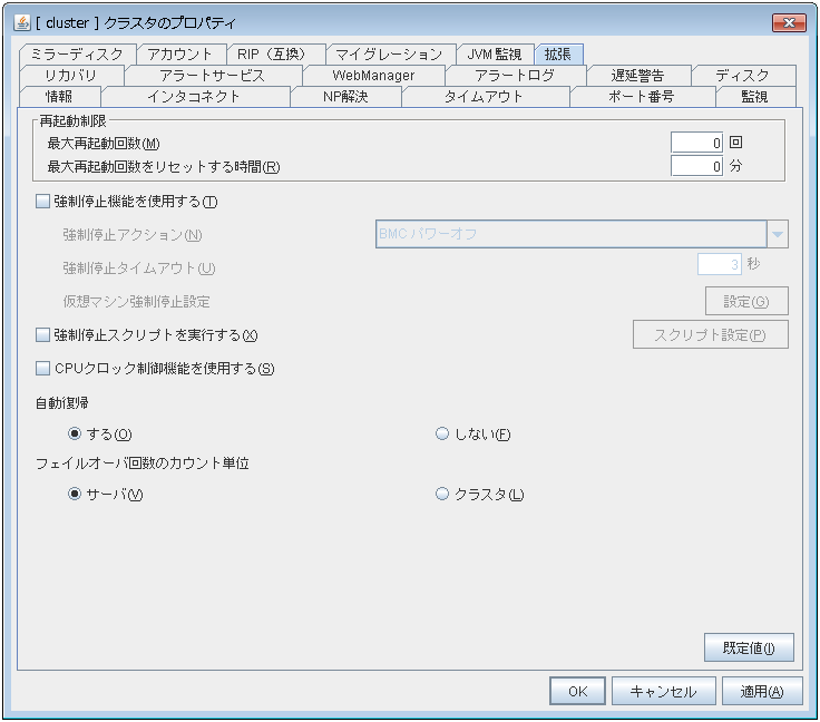 CLUSTERPRO X 4.0 より後のバージョンで追加変更された機能は、設定および表示することはできません。