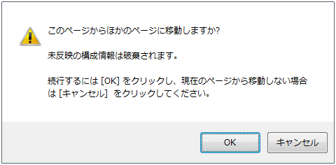 WebManager の [操作モード] [参照モード] [検証モード] でポップアップ画面を表示している状態で [設定モード] に切り替えた場合、開いているポップアップ画面は終了します。ポップアップ画面で実行している操作は継続して実行されます。