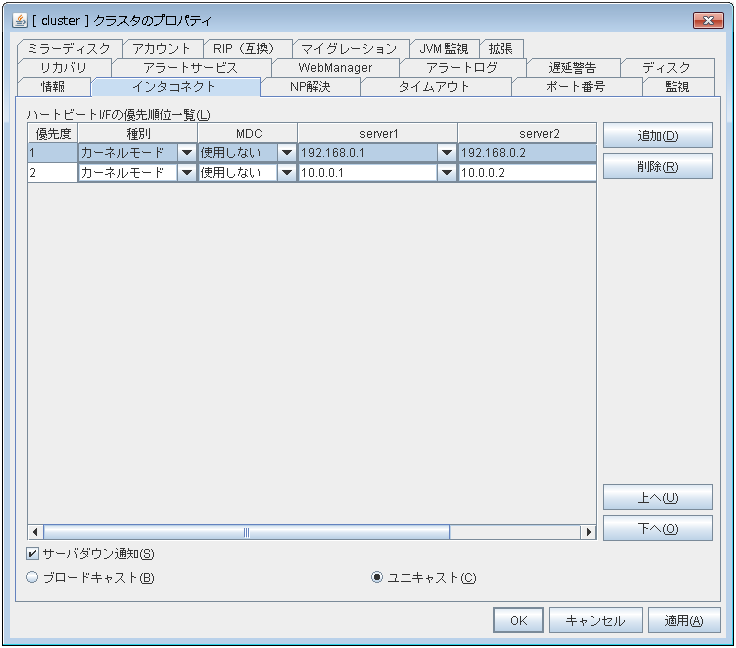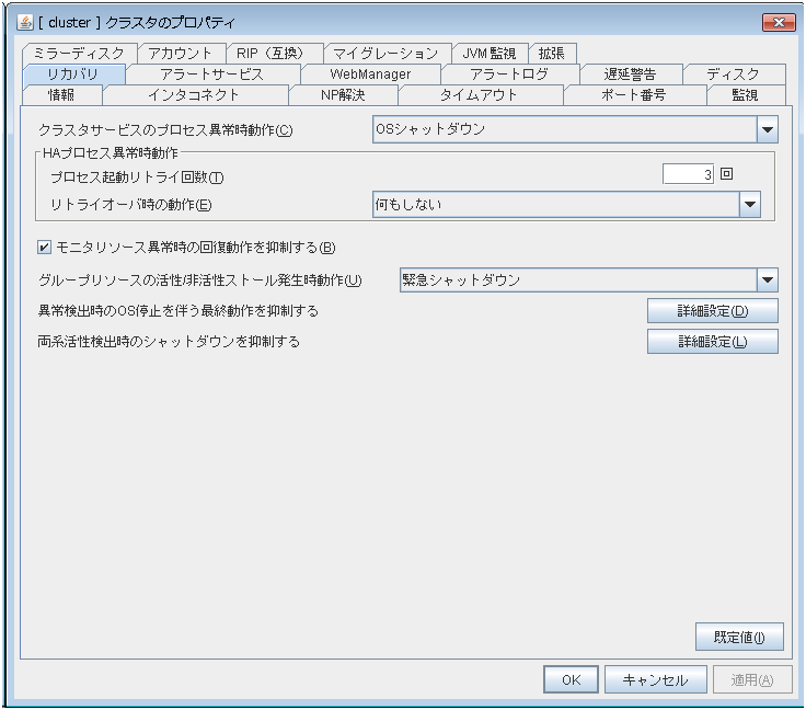CLUSTERPRO X 4.0 より後のバージョンで追加変更された機能は、設定および表示することはできません。