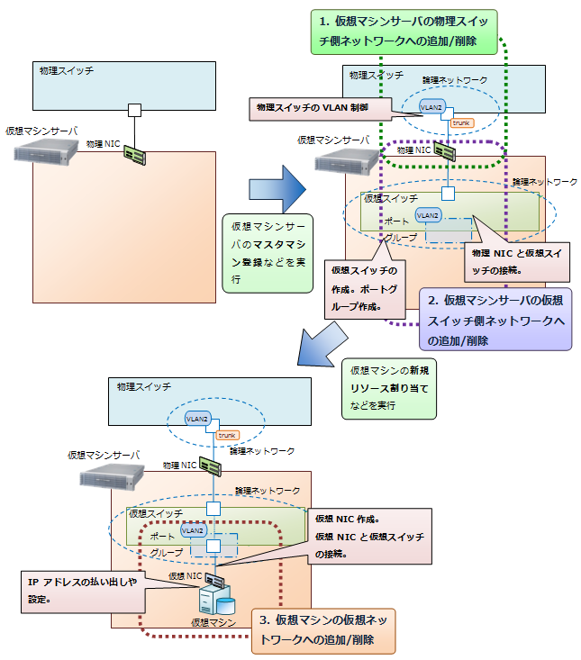 仮想マシンサーバの物理スイッチ側ネットワークへの追加/削除