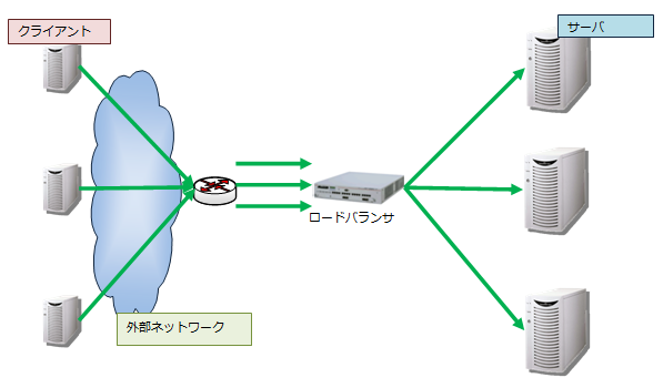 ロードバランサ (負荷分散装置) は、外部ネットワーク上のクライアントからのアクセスを複数のサーバに振り分ける装置です。