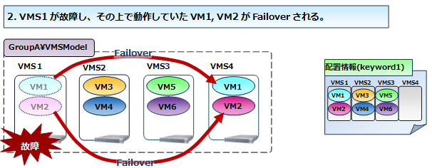 同様に、VMS2、VMS3が故障した場合にも、配置情報Keyword1を適用することで、元の状態に戻すことができます。