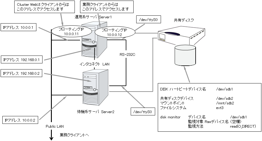 2.3.2. 2 ノードで共有ディスクを使用する場合の構成例