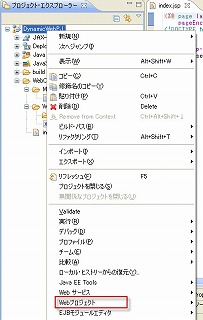 JSPファイルを右クリックすると、ポップアップメニューにWebプロジェクトが表示されます。