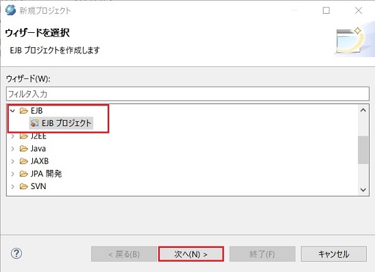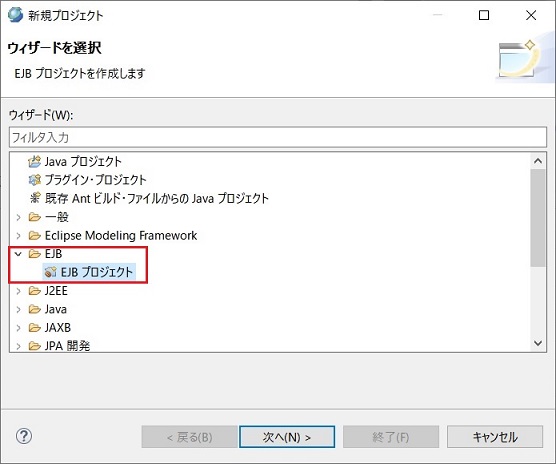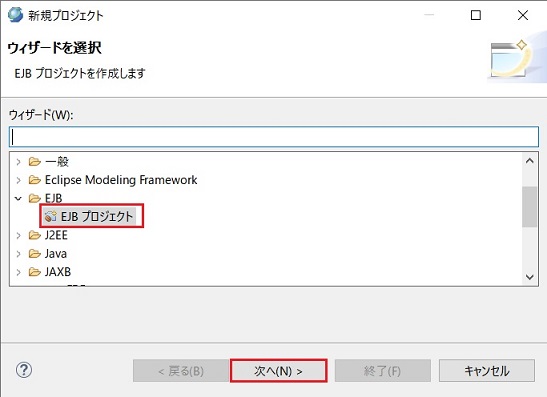 EJB > EJB プロジェクト を選択して、次へ をクリックします。