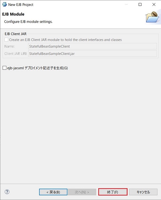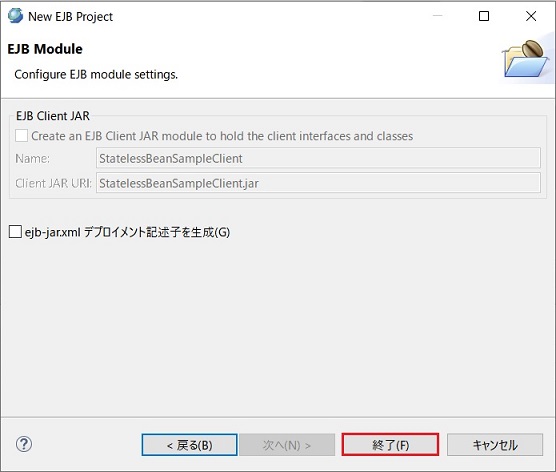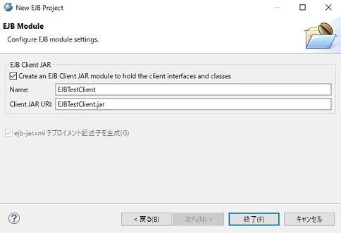 を指定した場合、META-INFフォルダ配下に ejb-jar.xml ファイルも存在することを確認してください。
