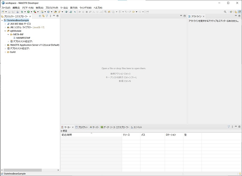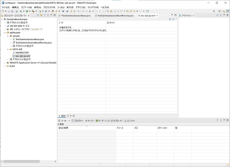 StatelessBeanSample(※ステートフルの場合:StatefulBeanSample、Singletonの場合:SingletonBeanSample) プロジェクトのnec-ejb-jar.xmlが作成されます。