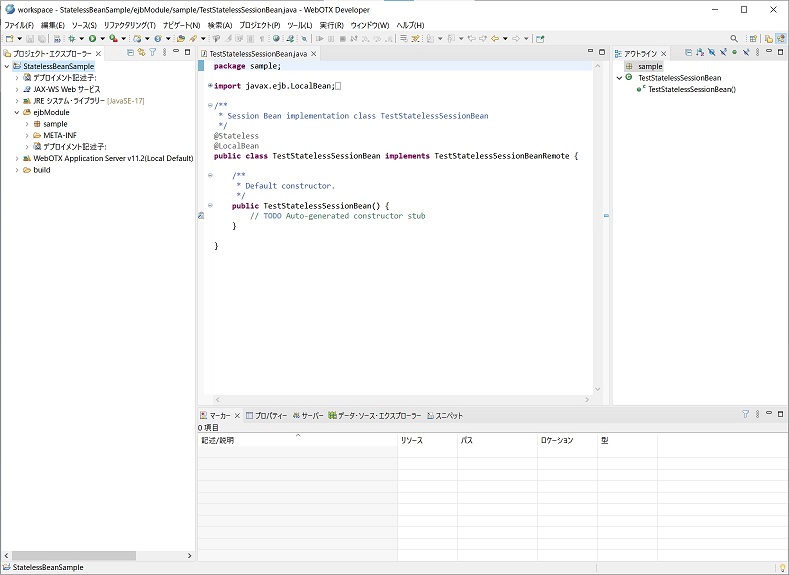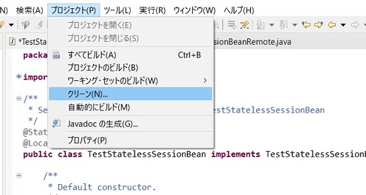 本節での手順は、ステートレスセッションBean の場合と、後述のステートフルセッションBean、SingletonセッションBean の場合とで、