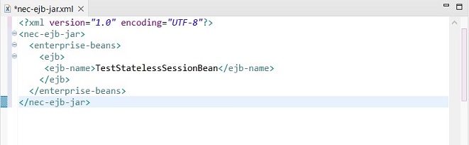 (※ステートフルの場合: <ejb-name>TestStatefulSessionBean</ejb-name>作成されたnec-ejb-jar.xmlファイルは以下のようになります。