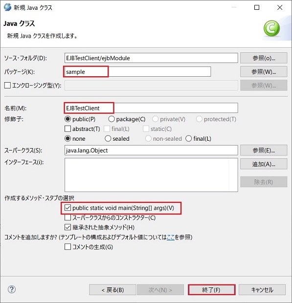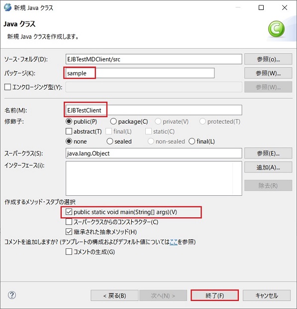 EJBTestMDClientプロジェクトにクライアント用クラスを作成します。