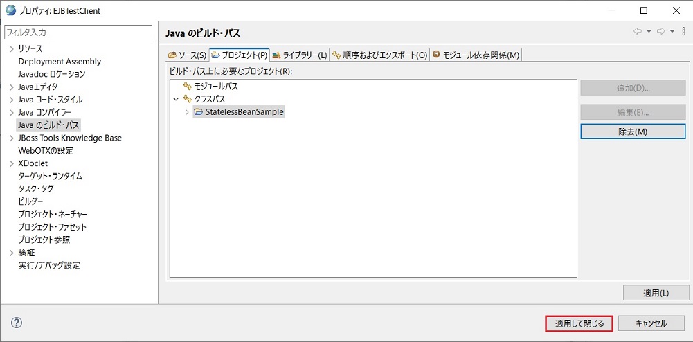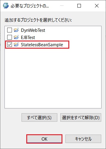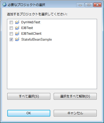 ただし、EJBテストクラインアントの作成時に、必要なプロジェクトの選択で、 SingletonセッションBeanのSingletonBeanSampleを選択するなど、一部、読み替えが必要な箇所があります。