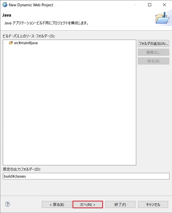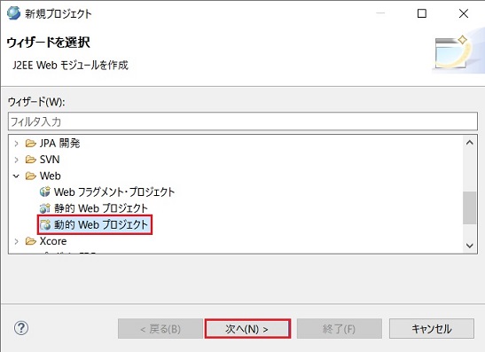 Web > 動的 Web プロジェクト を選択して、次へ をクリックします。
