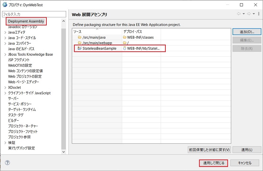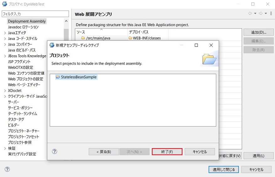 ・ Jakarta EEモジュール依存関係での選択項目(DynWebTest, SingletonBeanSample)