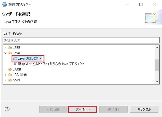 メニュー ファイル > 新規 > プロジェクト を選択して、新規プロジェクト 画面を開きます。
