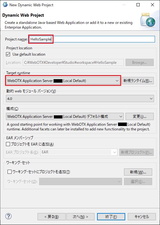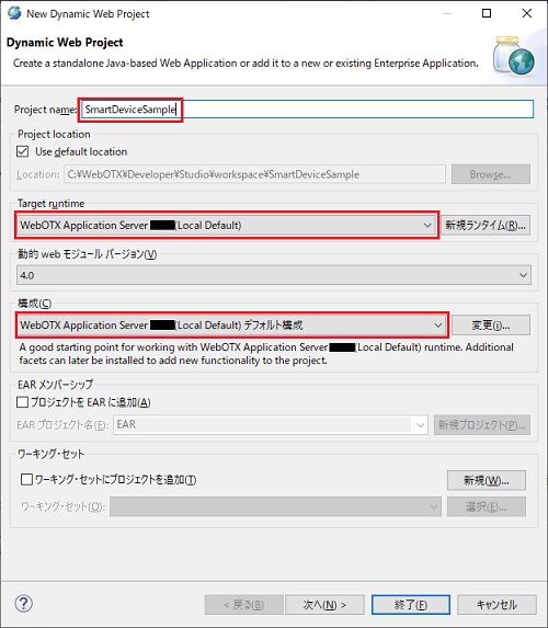 Studio での、Webアプリケーション作成用のプロジェクトです。