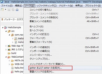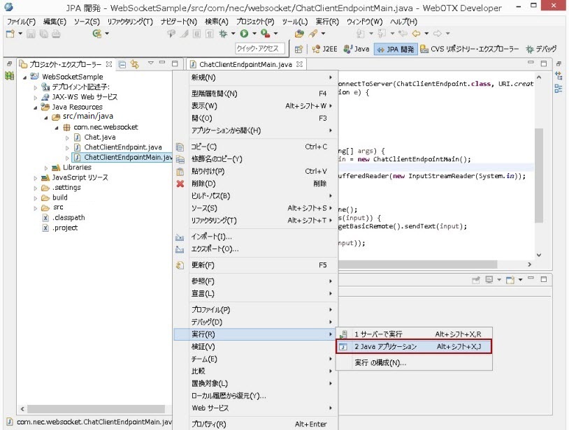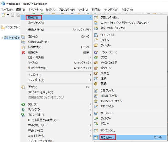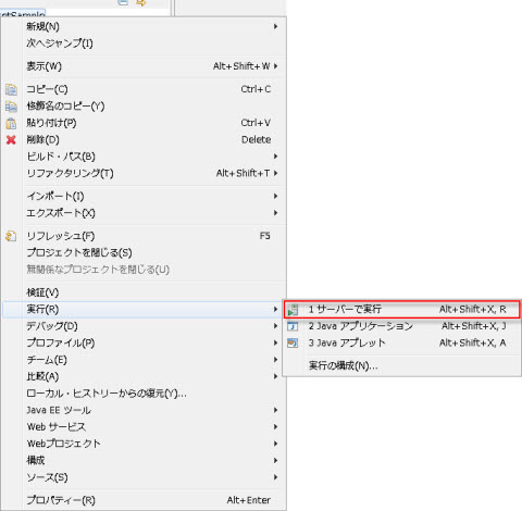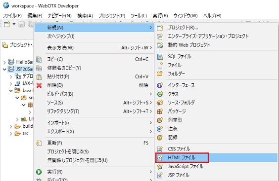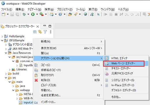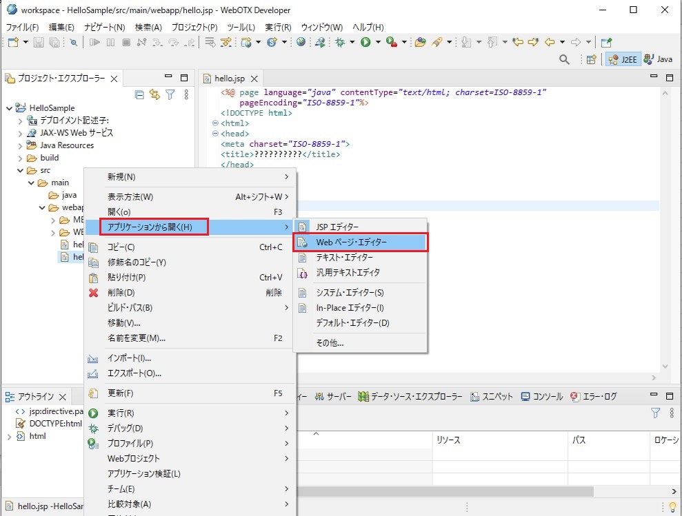 下図は、J2EEパースペクティブ(プロジェクト・エクスプローラー)の場合です。
