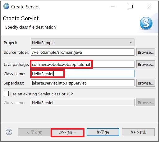 ビジネスロジック用のクラスは、サーブレット用APIをimportしない汎用的なクラスとして作成する事が望ましいです。