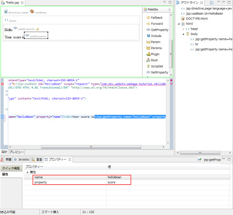 <jsp:getProperty name="helloBean" property="score" />.