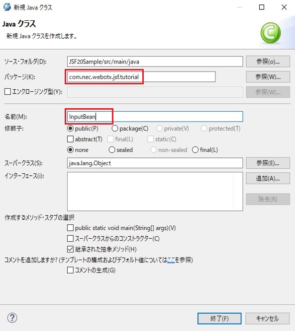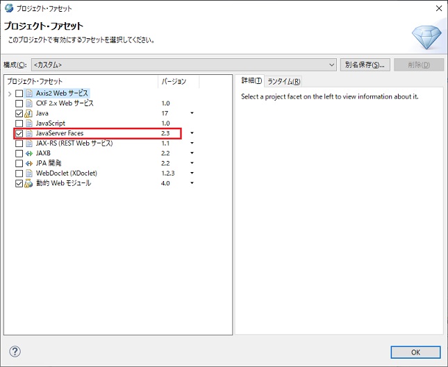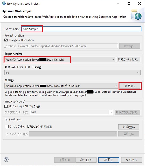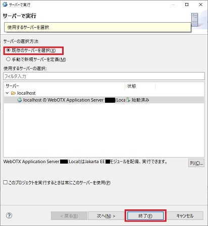 実行支援ライブラリを利用する場合は、Javaパースペクティブである必要があります。