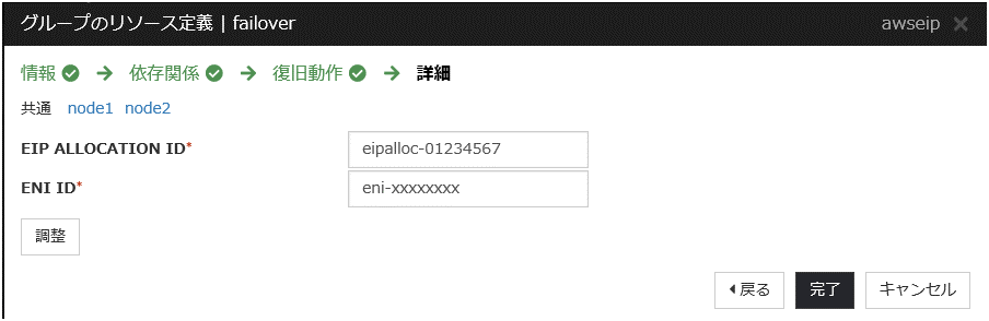 異常を検知した時点でAWS 仮想 IP リソースが自動的に再起動され、ターゲットが正しいENI IDに更新されます。別のENI IDに変更された原因として、他のHAクラスタで同じVIPアドレスを誤って使用していないかなどを確認します。