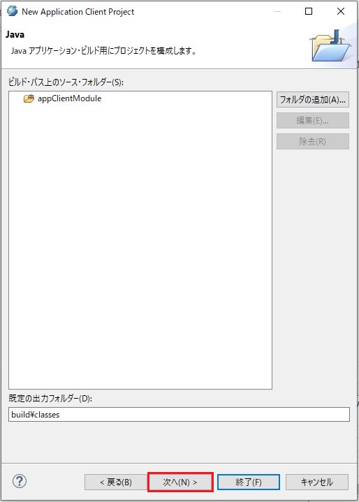 表示されたアプリケーション・クライアント・プロジェクト画面に 次へ