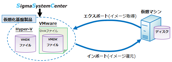 仮想化基盤製品が提供する仮想マシンのインポート/エクスポート機能を、利用する方法です。