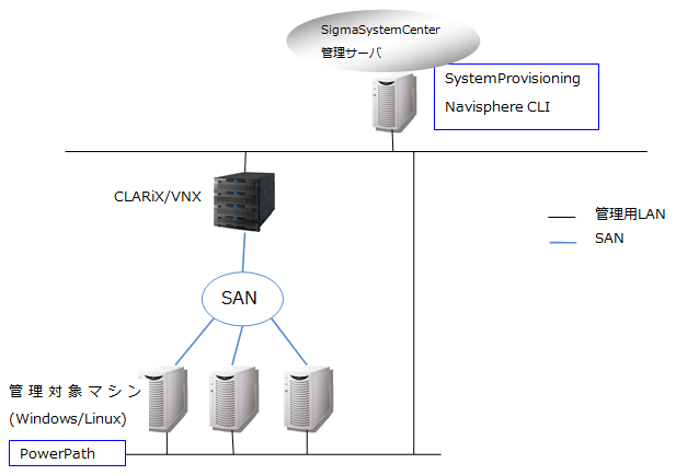 VNXの制御を行うためには、Navisphere CLIが必要です。Navisphere CLIはSystemProvisioningのインストール先と同じ管理サーバにインストールする必要があります。
