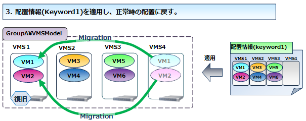 同様に、VMS2、VMS3が故障した場合にも、配置情報Keyword1を適用することで、元の状態に戻すことができます。