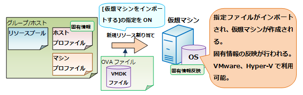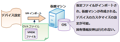 マシンプロファイルの指定により、インポートするファイルと異なるデバイスの設定で仮想マシンを作成することが可能です。ホスト名やIPアドレスなどの固有情報の反映を行うことはできません。
