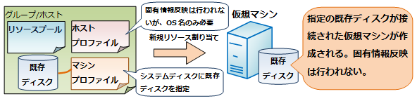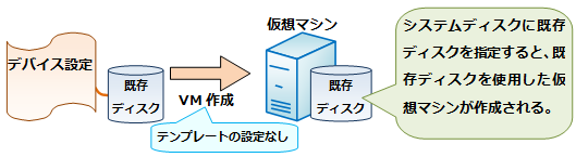 マシンプロファイルのシステムディスクに既存ディスクを指定した場合、既存ディスクを使用して仮想マシンが作成されます。