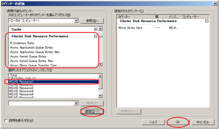 ミラー統計情報採取機能で扱うオブジェクト名は「Cluster Disk Resource Performance」です。オブジェクト「Cluster Disk Resource Performance」を指定することでミラー統計情報を採取できます。