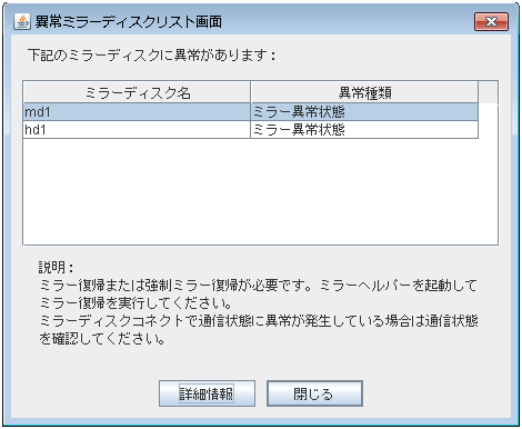 mdclose は失敗しました。ミラーディスクの通信を確立できませんでした。 |