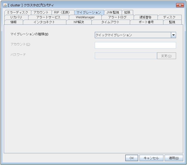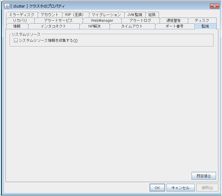CLUSTERPRO X 4.0 より後のバージョンで追加変更された機能は、設定および表示することはできません。