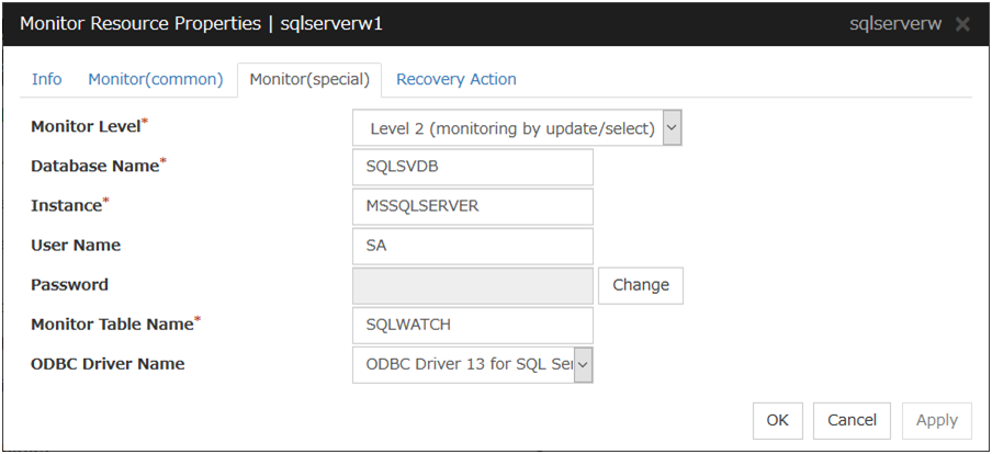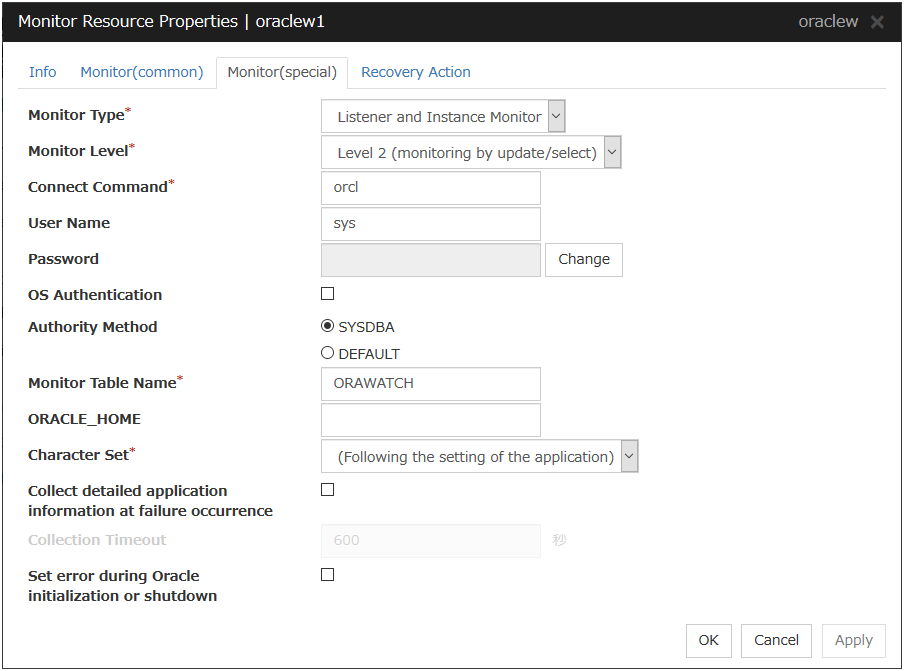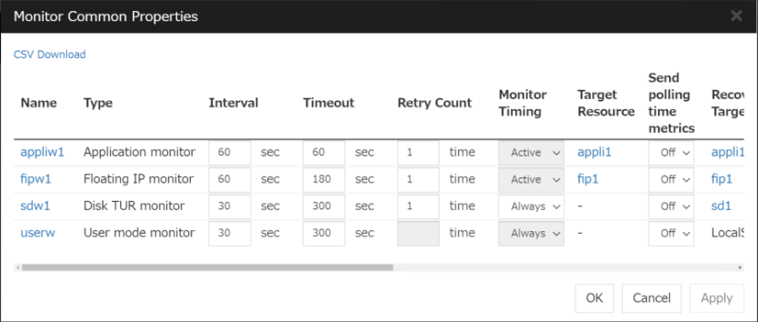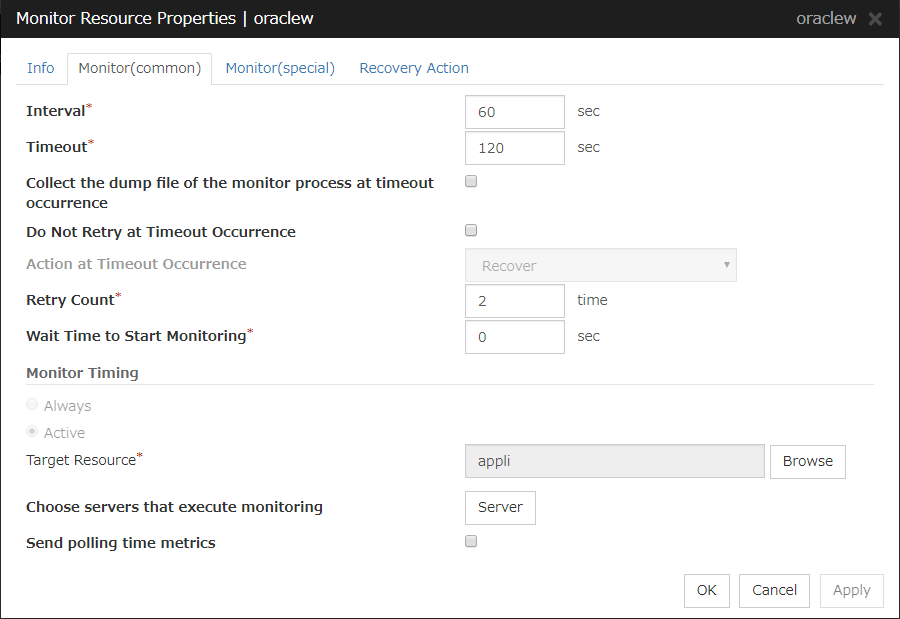 Select Disable recovery action(Do nothing) if you think this error is CLI command failure (a monitoring target itself is in normal status) and no action needs to be taken. This option is recommended as still error detection can find errors, for example when troubles are found in AZ condition.