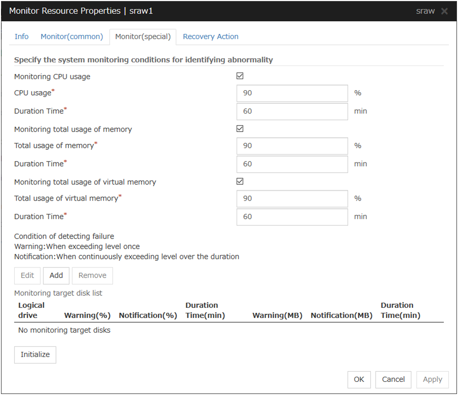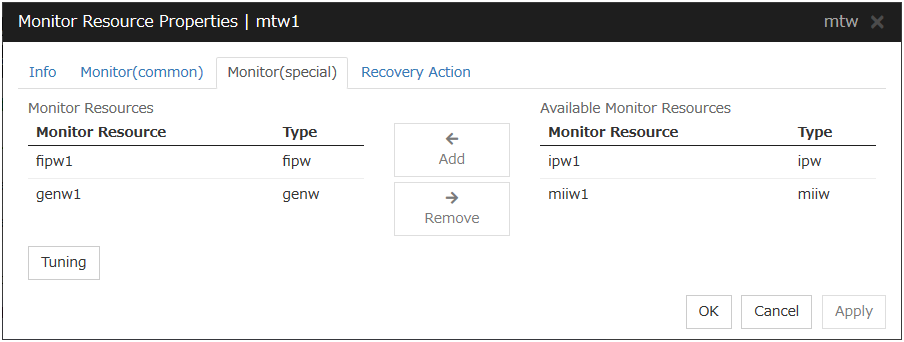 A monitor resource refers to a resource that monitors a specified target to be monitored. When detecting an error in a target to be monitored, a monitor resource restarts a group resource and/or executes failover.