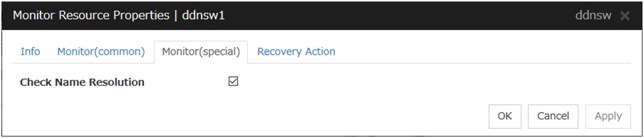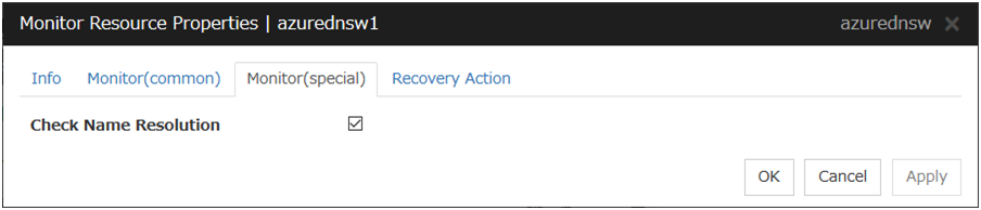 The checkbox is selected (default):Checks whether to obtain the registered IP address by name resolution of the virtual host name (DNS name). The checkbox is not selected:Monitoring disabled