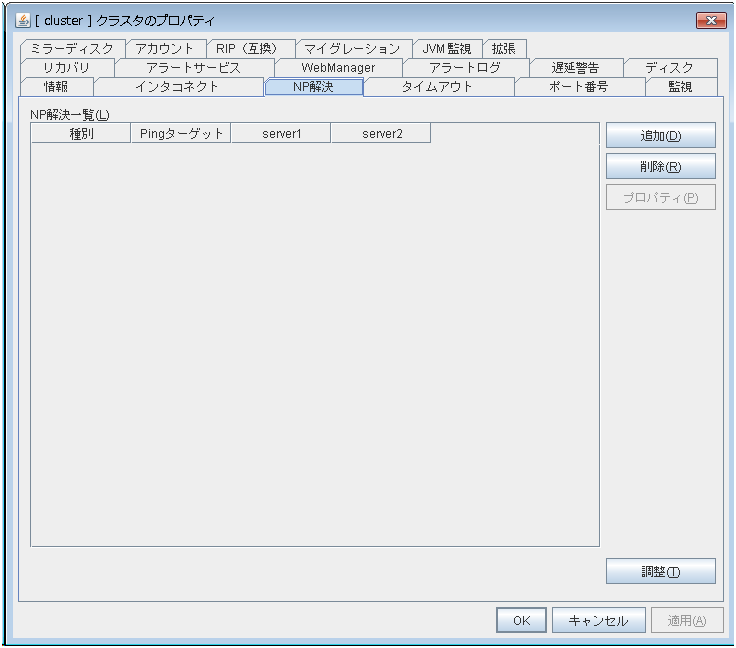 CLUSTERPRO X 4.0 より後のバージョンで追加変更された機能は、設定および表示することはできません。