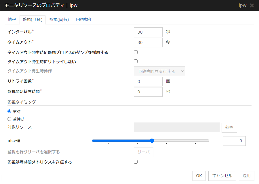 図 9.10 モニタリソースの監視開始待ち(監視開始待ち時間0秒)¶
