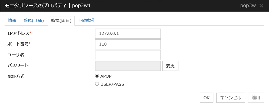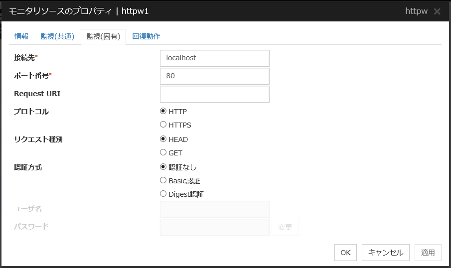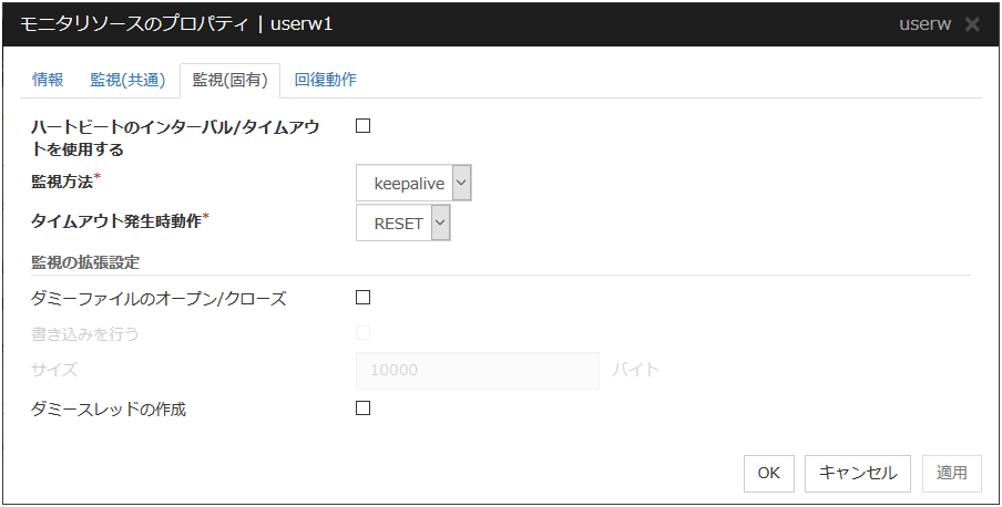 「サーバのパニック」は監視方法がkeepaliveの場合のみ設定可能です。