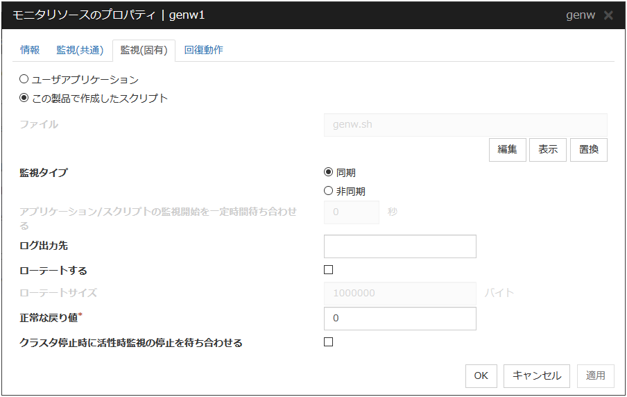 カスタムモニタリソースが監視時に実行するスクリプト