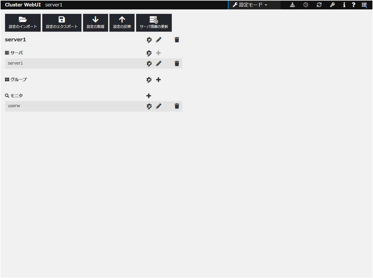 CLUTERPRO X SingleServerSafe では、構成内容を記述するデータのことを、構成情報と呼びます。Cluster WebUI を用いて構成情報を作成します。本章では、Cluster WebUI の起動方法、および構成情報の作成手順をサンプルの構成例を用いて説明します。