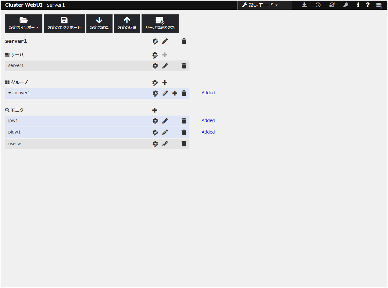 - クラスタリソース