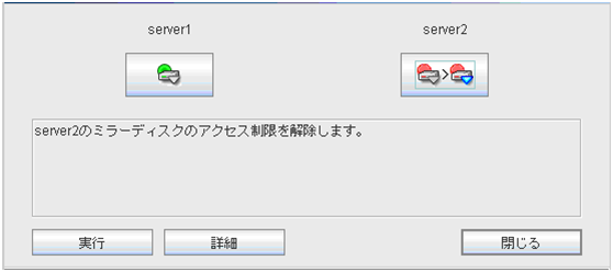 - OS で設定可能な TCP/IP のホスト名と同じ規則があります。- 最大 31 文字 (31バイト) までです。- 文字列先頭と文字列末尾にハイフン(-) とスペースは使えません。- 文字列全て数字の場合は使用できません。 クラスタ停止ミラーエージェントの停止ミラーエージェントの開始クラスタ開始サーバグループで一意 (英大文字・小文字の区別なし) な名前を入力してください。 プロパティ選択しているサーバグループのプロパティを表示します。 名前サーバグループ名を表示しています。 サーバサーバグループに属しているサーバ名を表示しています。