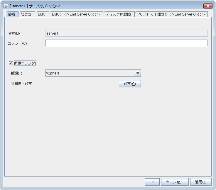 チェックボックスがオン仮想マシン (ゲスト OS) であることを示します。仮想マシンの設定が可能になります。 チェックボックスがオフ物理マシンであることを示します。仮想マシンの設定はできません。