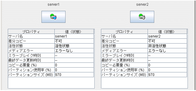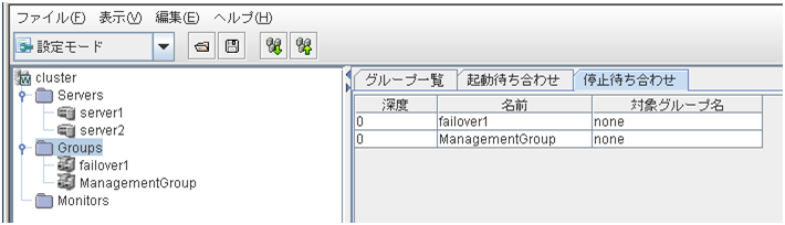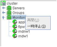 サーバ、グループリソース等の各クラスタ資源の状態が確認できます。詳しくは「 2.3. WebManager のツリービューで各オブジェクトの状態を確認するには 」を参照してください。
