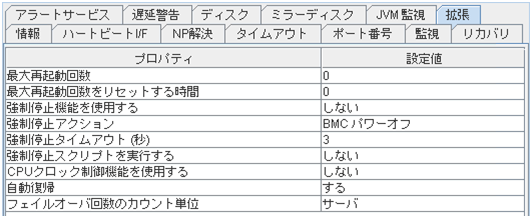CLUSTERPRO X 4.0 より後のバージョンで追加変更された機能は、設定および表示することはできません。