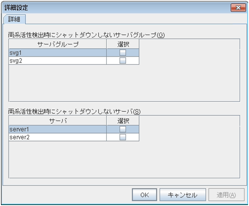 上段には、ツリービューで選択した各クラスタ資源についての情報が表示されます。下段には、各サーバ、各グループリソースや各モニタリソースの起動・停止状況とコメントが一覧表示されます。また、右上の [詳細情報] をクリックすると、さらに詳しい情報がダイアログで表示されます。詳しくは「 2.4. WebManager のリストビューでクラスタの状態を確認する 」を参照してください。